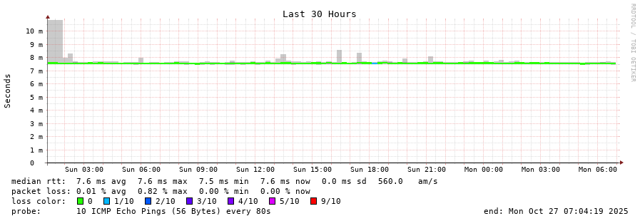 traceroute to 1.1.1.1 (1.1.1.1), 30 hops max, 60 byte packets - Generated at 2025-10-27 07:00:01