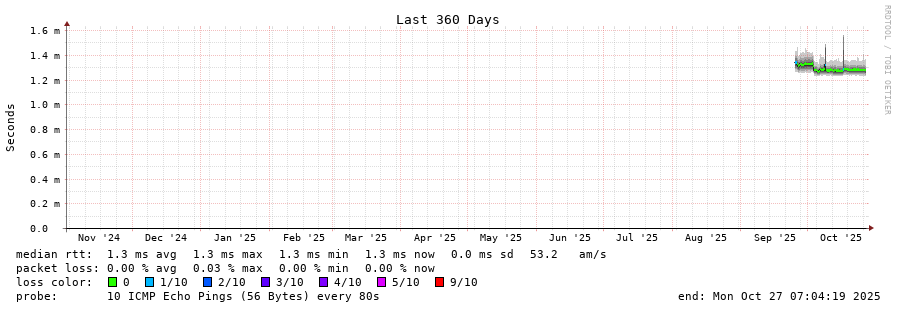 traceroute to 8.8.8.8 (8.8.8.8), 30 hops max, 60 byte packets - Generated at 2025-10-27 07:00:01