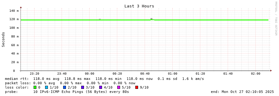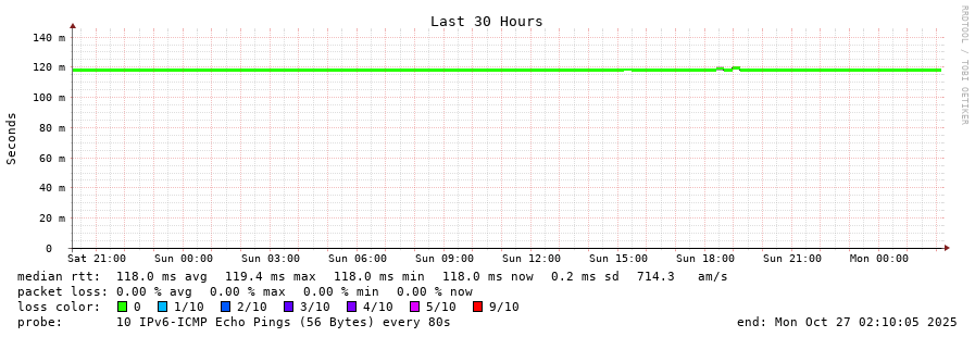 traceroute to 2001:b68:d::28 (2001:b68:d::28), 30 hops max, 80 byte packets - Generated at 2025-10-27 01:00:01