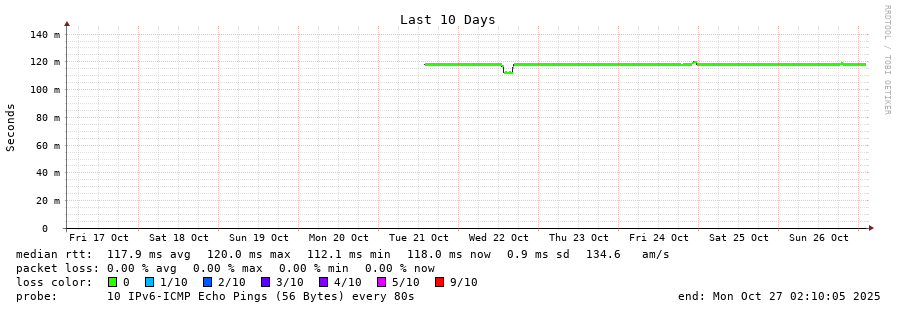 23 > 2001:b68:d::28 (2001:b68:d::28) [AS2108] 118.306ms 118.284ms 118.344ms