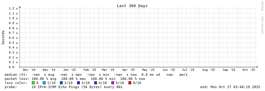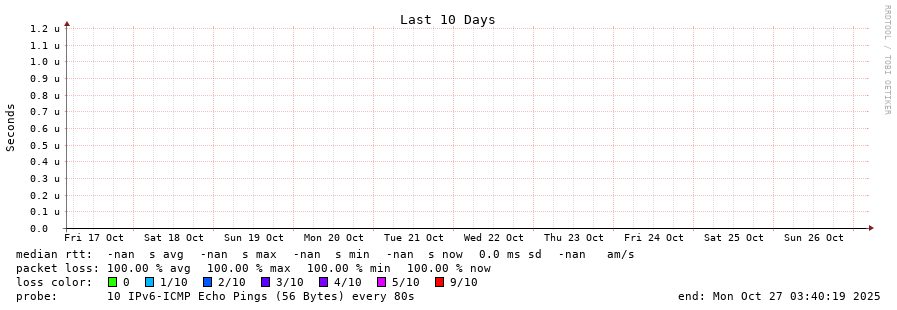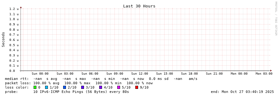 traceroute to fd69:226f:3a3c::2 (fd69:226f:3a3c::2), 30 hops max, 80 byte packets - Generated at 2025-10-27 03:30:02