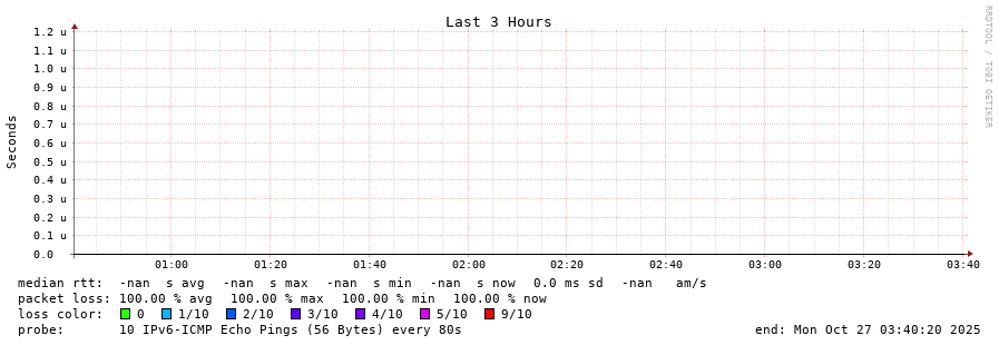 traceroute to fd9b:f75:a3d5::2 (fd9b:f75:a3d5::2), 30 hops max, 80 byte packets - Generated at 2025-10-27 03:30:02