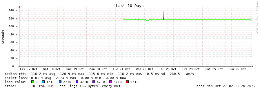 20 > 2001:67c:10:1102::11 (2001:67c:10:1102::11) [AS60149] 116.574ms 116.472ms 116.489ms