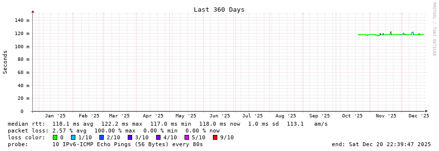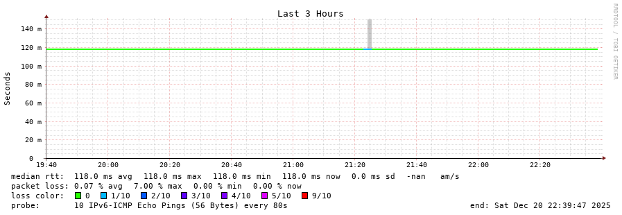 20 > 2001:978:2:33::e:9 (2001:978:2:33::e:9) [AS174] 118.546ms 119.791ms 119.140ms